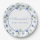 Prato De Papel Chá de Bebê Boho Flor Silvestre Azul Elegante