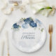 Personalize estes pratos de papel para chá de noiva clicando no botão "Personalizar" acima. Apresentando flores elegantes modernas azul poeira com flores brancas, azuis claras e verde oliva.