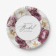 Um prato de papel para chá de panela ultra-feminino que captura a essência da elegância rústica com sua exibição abundante de peônias em profundo burgundy, ameixa, rosa poeirento e branco marfim suave harmoniosos. Os elementos botânicos femininos são combinados como se fossem um buquê de jardim suntuoso e tornam o entretenimento dos seus convidados tão agradável! O texto manuscrito em letra moderna escreve "Bridal" em estilo adorável. Personalize o modelo de texto com o nome da noiva.