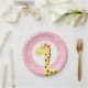 Prato De Papel Chá de Bebê da Girafa com Laço Rosa para Menina