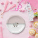 Este prato de papel apresenta um prato rosa claro e branco com bolinhas brancas e listras cinzas com um cordeiro bebê no centro do prato. Personalize o convidado de honra e data. Ótima ideia para uma festa de aniversário!! Se precisar de ajuda ou itens correspondentes, entre em contato.