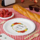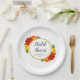 Vermelho de outono, laranja e flores douradas bordeando uma moldura de círculo dourado com eucalipto e folhagens botânicas para um evento de outono
