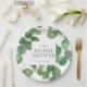 Criado para combinar com a nossa coleção de casamento de folhas de eucalipto. Com delicadas folhas de eucalipto em aquarela, este prato de papel botânico elegante pode ser personalizado com os detalhes do seu chá de bebê. Criado por Thisisnotme©