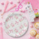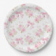 Estas placas de papel apresentam um fundo de laço e repolho rosa.