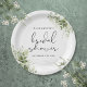 Este prato de papel de chá de noiva de folhagem botânica elegante pode ser personalizado com suas informações em tipografia chic. Projetado por Thisisnotme©