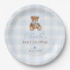 Pratos de Papel para Chá de Bebê do Ursinho de Xadrez Azul