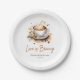 Tema do Chá de Bebê Amor está Fermentando - Pratos de Papel Chá de Bebê Floral Amor está Fermentando Café Brown!
