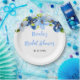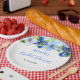 Este prato lindo e elegante apresenta flores azul bebê e azul marinho em aquarela com folhagens. O texto combina fontes manuscritas e serifadas para um visual moderno e sofisticado. É perfeito para um chá de bebê rústico de primavera ou verão.