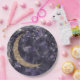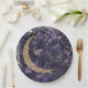 Prato De Papel Chá de Bebê Lua Estrelas Roxo Dourado Caprichoso