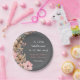 Pratos de papel para chá de bebê menina flor silvestre rosa Boho rústico. Elegante coroa floral em aquarela emoldura os detalhes do seu evento. Paletas pastel de rosa suave, branco e cinza escuro.