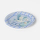 Uma Placa De Papel Xadrez Azul Personalizada Adorável Com Bebê E Caça Para Um Chá De Bebê.
