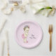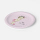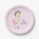 Louça de festa de chá de bebê princesa bebê menina adorável vestindo calças de babado e chinelos de coelho. Esses pratos de papel de festa de chá de bebê princesa fofa podem ser personalizados com texto no estilo de fonte e cor de sua escolha, e você pode escolher a cor de fundo.
