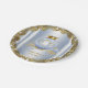 Elegantes pratos de chá de bebê azul bebê e dourado com adorável príncipe bebê em uma linda carruagem real em um elegante fundo azul bebê e dourado. Você pode adicionar texto para personalizar estes lindos pratos de papel para chá de bebê do príncipe.