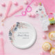 Prato De Papel Chá de Bebê Rosa com Letra em Aquarela Floral