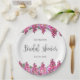 Cor base rosa enriquecida com floral é colocada na estrutura do design. Simples e Elegante. Este modelo de adesivo para chá de noiva combina duas fontes diferentes para um visual mais dinâmico. Caso precise de personalização para o design, sinta-se à vontade para entrar em contato com a loja