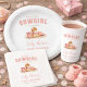 Prato De Papel Chá de Bebê Western Rosa Caubói Mirim