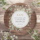 Com belas luzes de corda e delicadas folhas de folhagens em aquarela sobre um fundo de madeira rústica, esses pratos de papel para chá de casal botânico chique podem ser personalizados com as iniciais do seu monograma e detalhes especiais do chá de casal. Criado por Thisisnotme