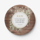 Com luzes de corda encantadoras e folhas delicadas de folhagem em aquarela num fundo de madeira rústica, estes pratos de papel para chá de casal com elementos botânicos podem ser personalizados com o vosso monograma e detalhes do chá de casal. Concebido por Thisisnotme