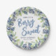 Placa De Papel De Chá de fraldas Berry. Adicione um toque charmoso e prático ao seu chá de fraldas com esta placa de papel doce de morango, com uma bela borda de mirtilos de água e folhas verdes. Perfeito para um chá de fraldas de menino, mas doce o suficiente para uma garota, esta design traz uma sensação nova e elegante para a mesa. O centro apresenta uma combinação de escrita manual em negrito e uma fonte simples em azul e marinho. Totalmente personalizável — atualize o texto, as cores e o plano de fundo para corresponder ao seu tema. Excelente por servir guloseimas enquanto adiciona um detalhe na moda à sua celebração!