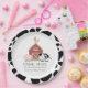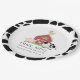 Esta bela e moderna placa de chá de fraldas "oink, moo, cock-a-doodle do", neutra em termos de gênero, apresenta um porco, galinha e vaca com um celeiro vermelho sobre um fundo branco moldado por uma fronteira em padrões de vacas negras e brancas. Personalize para suas necessidades. Você pode encontrar produtos correspondentes na minha loja.