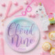Placas de papel de chá de fraldas em nuvem 9. Estamos na nuvem de nove placas modelo para que você personalize para o evento perfeito. Placa cor-de-rosa púrpura para chá de fraldas temático em nuvem e céu. Com nuvens, céu e estrelas. Decoração moderna e elegante de mesa de aquarela projetada digitalmente. Verifique os suprimentos de festas com temas na nuvem semelhantes visitando a coleção de chás de fraldas da Nuvem Nine.