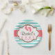 Prato De Papel Chá de fraldas Coral, Aqua e Stripes Brancas