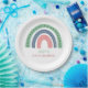 Esta bela placa de papel de chá de fraldas apresenta um arco-íris de três camadas desenhado à mão, cor rosa, azul e verde, com corações e linhas.