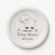 Uma pequena e encantadora placa de papel de chá de fraldas de borrego tem um padrão de pontos de giz creme e lavanda e um cordeiro com uma aquarela parece um rosa púrpura pálido no seu ouvido. Púrpura clara é uma cor de bebê doce e bonito. Trabalho de arte © Chrissy H. Studios, LLC. Todos os direitos reservados.