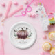 Placa de papel de chá de fraldas, russa e elegante, com uma abóbora rosa, com flores queimadas e brilho dourado. Personalize este produto adicionando o nome da futura mãe e a data do evento. design de outono perfeito para uma menina.