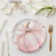 Essa elegante e encantadora placa de papel de chá de fraldas apresenta uma bela ilustração aquosa de uma abóbora com uma delicada fita rosa, perfeita para celebrar a chegada de um pequeno na estação do outono.