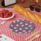 Balões de ar quente com aquarelas em tons de rosa, ouro e cinza, com pontos dourados e cor-de-rosa, sobre fundo roxo escuro. Coordena-se com a minha coleção de Chás de fraldas "Pink+Dourada de Balões de Ar Quente".