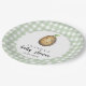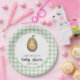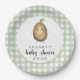 "Um pouco de batata está a caminho". Celebrar com esta festa de chá de fraldas de batatas de desenho animado! Batata bonitinha de aquarela com cara de bebê. Gaiola verde.