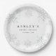 Decorre seu chá de fraldas com esses materiais adoráveis do partido, com uma borda de floco de neve com brilho prateado a aquarela. Personalize com o seu texto. Produtos correspondentes disponíveis no compro Adore Paper Co Zazzle.