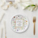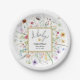 As placas de papel redondas de chá de fraldas na moda "oh, baby!" apresentam uma elegante borda de flor silvestre de aquarela e seus detalhes em letra chic. CORRESPONDENTE a itens na nossa coleção.
