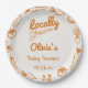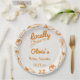 Como podem ver, esta única e elegante placa de papel de chá de fraldas cultivada localmente tem um modelo bem projetado. Com verduras desenhadas à mão laranja e nome escrito e data em laranja. E creme de fundo. O que você pode personalizar facilmente clicando no botão personalizar.
