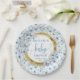 Prato De Papel Chá de fraldas de ouro de flores azuis empoeiradas