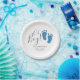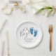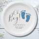 A Placa de Papel Chá de fraldas deste Rapaz é decorada com os pés de bebê brilhantes azuis e as palavras, Oh Boy! Facilmente personalizável.