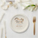 Placas de papel de chá de fraldas com um grupo de adoráveis selvas de aquarelas (elefante, girafa, meerkat e leopardo) e árvores em tons sujos. Clique no botão "Personalizar" para editar com suas próprias informações.