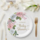 Folhas lindas, elegantes, cor-de-rosa e branca, florais / rosas e verdes folhas de papel de chá de fraldas personalizado botânico personalizado com o nome da futura mãe em letra de escrita de caligrafia dourada. Esta bela coleção funcionará bem para um chá de primavera ou de uma menina de verão.