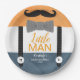 Combine o seu convite para chás de fraldas e decorações de homem com estas pratos de papel bonitinhas em laranja e marinho azul com bigode, gravata de arco e suspensórios. Convidado e outra decoração de festa em loja!