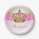 Chapas de papel, cor-de-rosa e chá de fraldas, de ouro, com uma bela coroa de princesa real rosa e ouro, sobre um elegante fundo cor-de-rosa e ouro. Essas placas de papel cor-de-rosa e chá de fraldas dourado podem ser personalizadas com texto no estilo de fonte e na cor de sua escolha.
