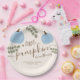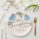 Chapas de papel de chá de fraldas de menino de abóbora azul, de queda branca. Este design apresenta uma fonte moderna de escrita de caligrafia, abóboras e ramos verdes de Eucalipto.