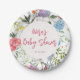 Placas florais de chá de fraldas com tema primavera floral brilhantes com flores coloridas a aquarelas.