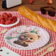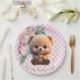 Prato De Papel Chá de fraldas floral de gingham, rosa, de pelúcia