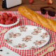 Pão de gengibre, pratos de papel de chá de fraldas.