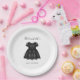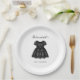 Placas de papel personalizadas para o Chá de fraldas Gótico elegante. Adicione um toque de elegância escura ao seu chá de fraldas com nossos guardanapos chás de fraldas góticos. Design apresenta um vestido preto de bebê gótico, elegantemente adorado com um arco preto e um crânio de ouro.