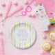 Personalize essas placas de papel de chá de fraldas neutras em relação ao gênero que apresentam faixas de aquarela em pontos amarelo, lavanda, rosa, azul e branco e amarelo. CORRESPONDENDO a itens na nossa loja.