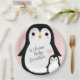 Celebre os novos pais e o bebê com este design de pinguim fofo! O fundo cor-de-rosa macio e o pinguim giro faz dele um design perfeito para uma menina a caminho, especialmente para um chá de inverno!