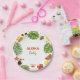 Este prato alegre e colorido é perfeito para celebrar um Chá de fraldas com um tema Aloha Baby, Hawaiian, Luau, Summer ou Tropical. Se apresentar uma fronteira com desenhos tropicais divertidos e as palavras "Aloha Baby" no centro. Este design neutro por sexo é bonito e perfeito para coordenar com suprimentos de partes de cores sólidas.