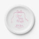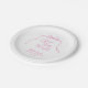 Ela está se casando! Apresentando um design simples e minimalista adornado com um charmoso arco rosa e a frase manuscrita "Ela está se casando". Estilo caprichoso para uma celebração casual de chá de noiva. Personalize o modelo para incluir o nome da noiva e a data do evento, tornando cada prato um souvenir especial para a ocasião. © Kimbellished, LLC